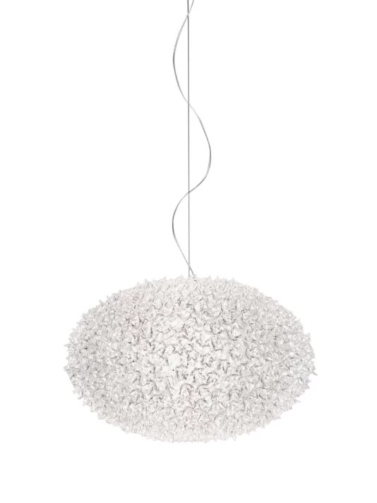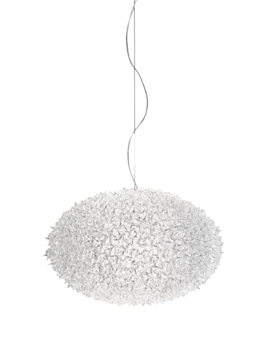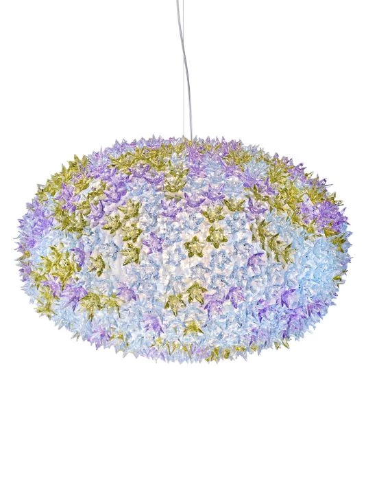 From the Big Bloom Lamp Collection. Bloom is a tubular polycarbonate framework entirely covered by a structure of tiny transparent polycarbonate double corolla flowers. The result is an industrially produced lamp but with all the forms and stylistic complexity of a unique handcrafted piece.