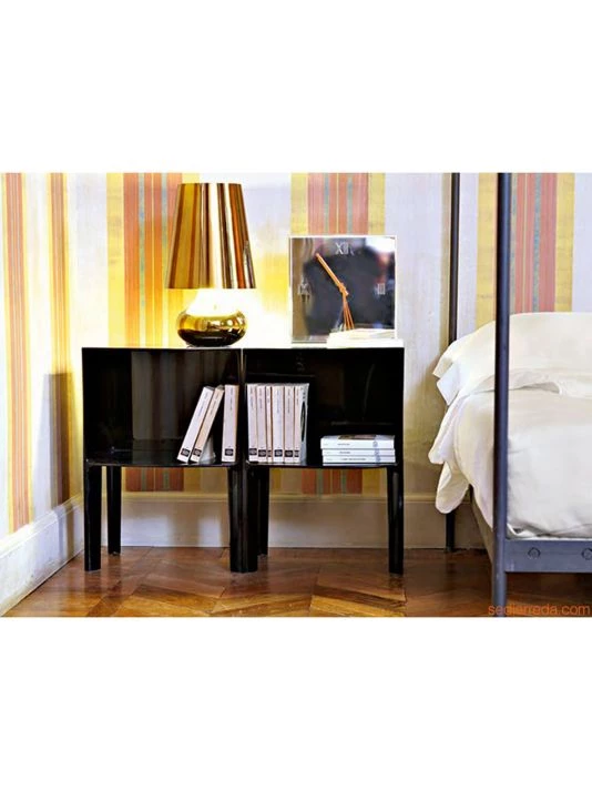 From the Cindy Table Lamp Collection. The typical table lamp of the seventies given new form and color. The Cindy lamp with a conical lampshade and rounded teardrop base lends a creative vibe to any space.