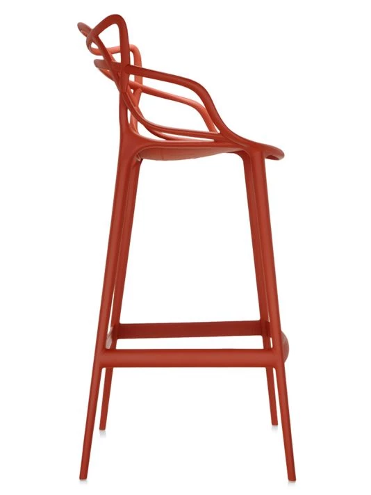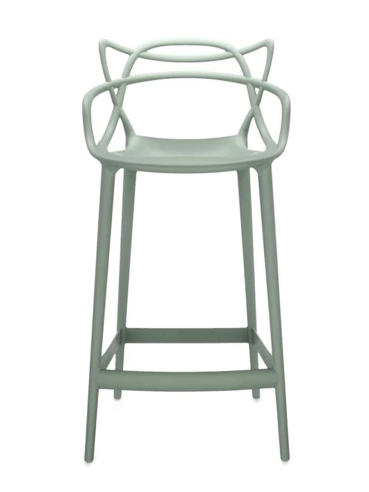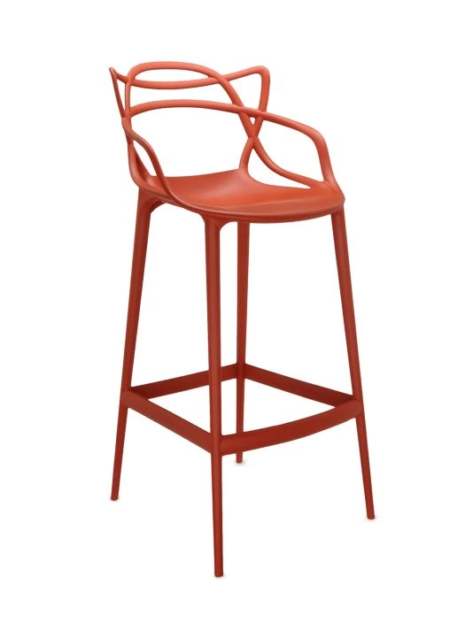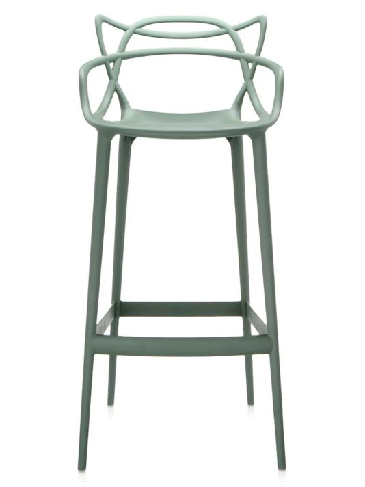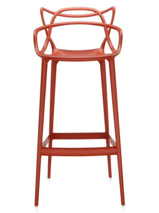 From the Masters Stool Collection. The Masters Stool is a clear tribute to three symbol-chairs, reworked and reinterpreted by Starck’s creative genius. The unmistakable silhouettes of Arne Jacobsen’s Series Seven, Eero Saarinen’s Tulip Armchair and Charles Eames’ Eiffel Chair entwine in a sinuous hybrid, creating a fusion of original and attractive styles. Light, practical, and stackable, Masters can also be used outdoors.