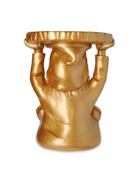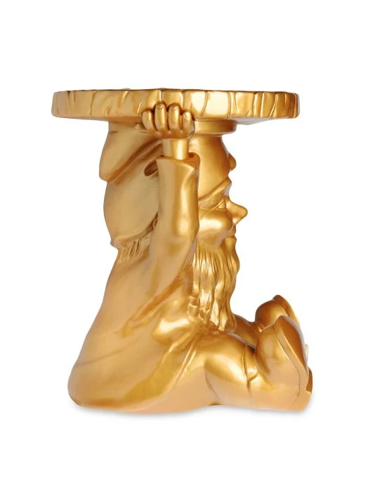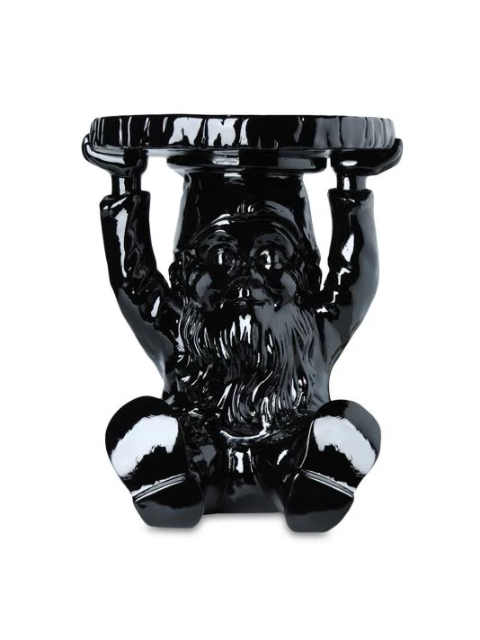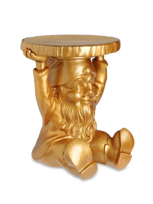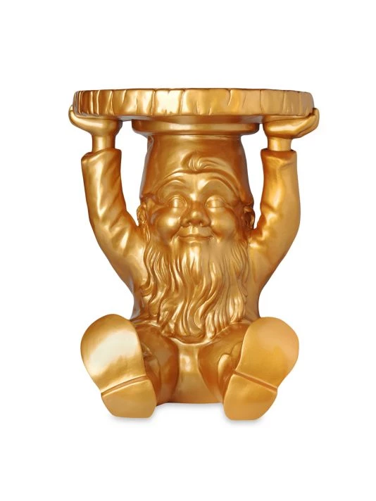 Conceived to furnish any and every setting with a friendly and humorous touch, the gnomes’ design keeps practicality in consideration. The hat is flat and round, ideal for use as an occasional table or stool.
