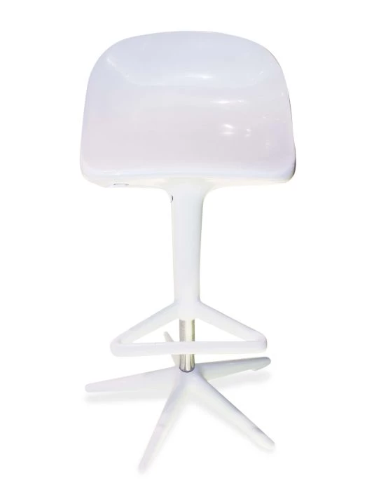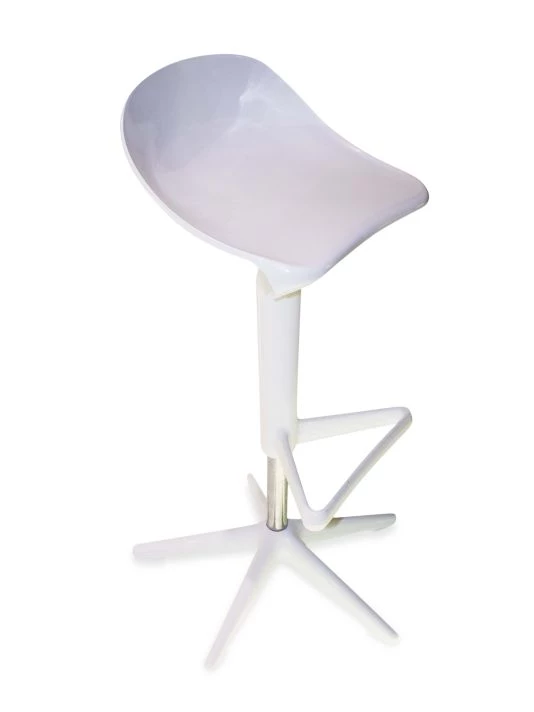 From the Spoon Stool Collection. An original stool with a shape as elastic in appearance as it is in function. The innovation of Spoon consists mainly in attaching the seat to a central support with a specially reinforced curve to guarantee flexibility and comfort. Furthermore, thanks to a sophisticated design solution, the gas lift pump adjusts the height and is perfectly inserted into the stem. In the same ingenious fashion, the handle which regulates the mechanism is perfectly concealed inside the seat.
