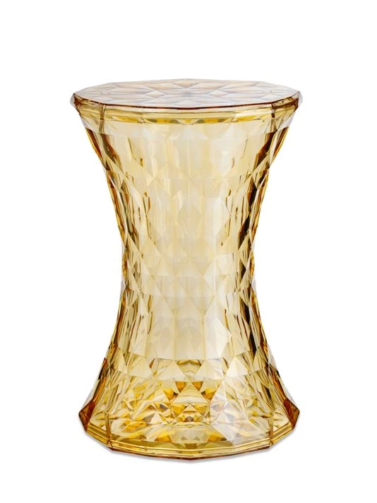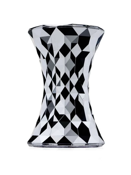 From the Stone Stool Collection. Stone is a stool with a shape that is reminiscent of an hourglass. Its surface is irregular and comprised of a myriad of geometrical facets which reflect the light and create a striking and unique play of colors.