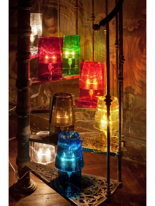 The bedside lamp is revisited by Kartell’s technology to become an industrial product as the result of the joining of two specular parts: two flat, rectangular sheets which, from being two-dimensional at the center, take on the shape and volume of a “semi-lamp”. The internal pleating of the diffuser embellishes the object, creating when lit, a play of reflections.