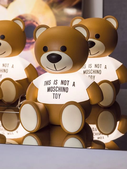 The iconic bear of Moschino, re-launched by the designer, becomes a table lamp for Kartell that interprets the playful, irreverent, and colorful style that the two brands have in common.