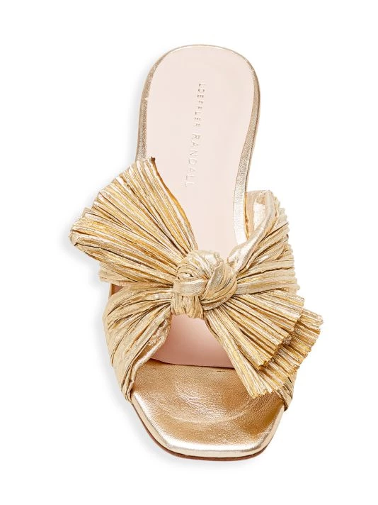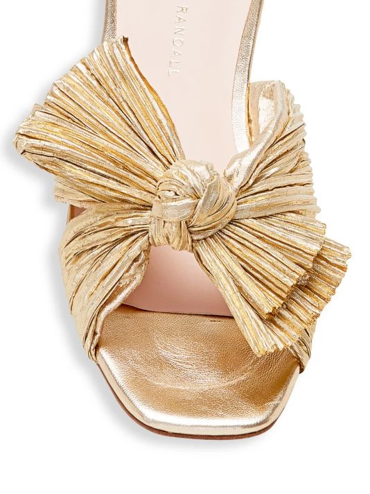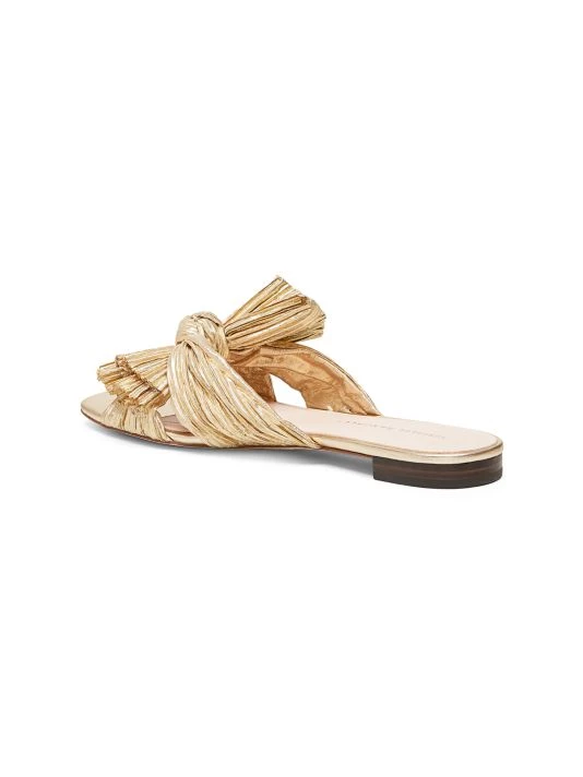 In a pleated finish, these shimmering lamé sandals are accented with signature knotted detail at the toe.