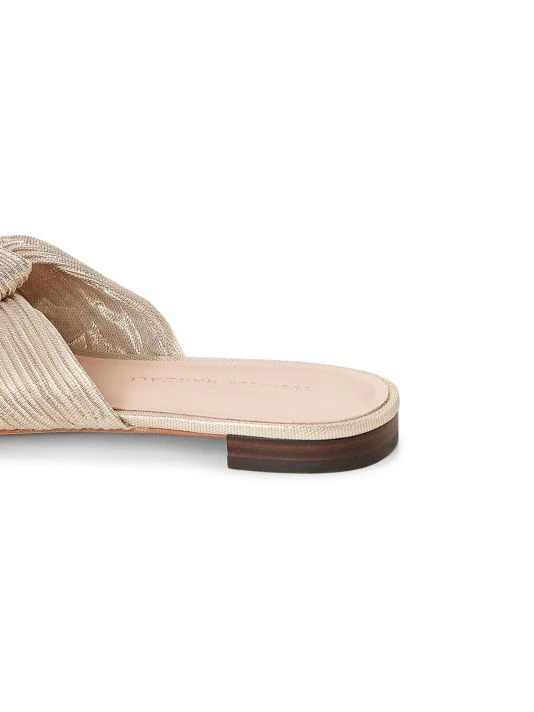 Knotted into a textural pleated design, these sandals stand out in a metallic finish.