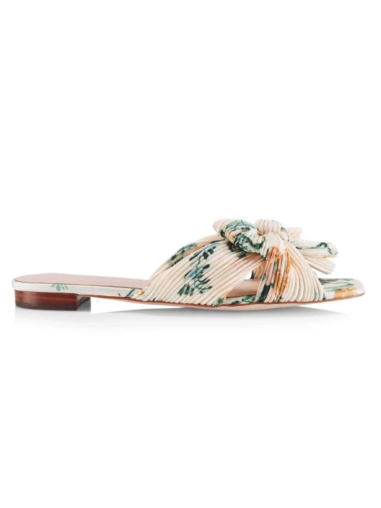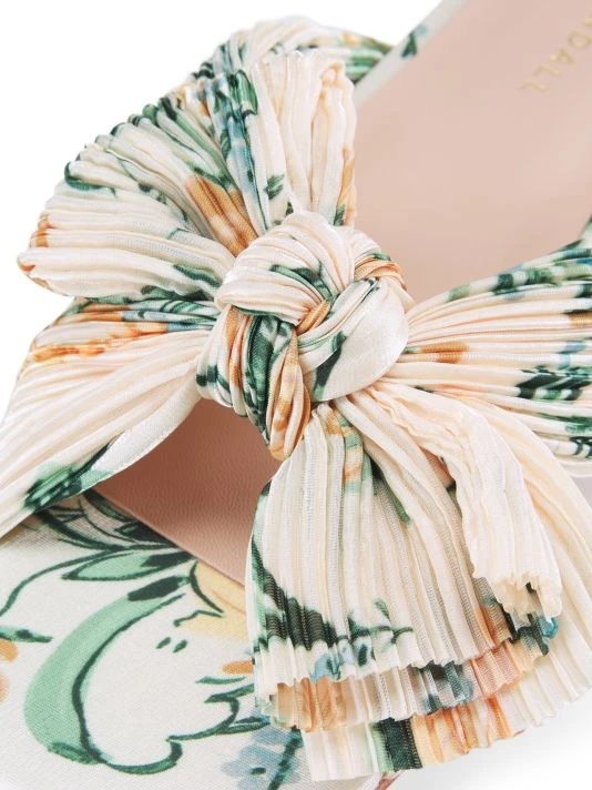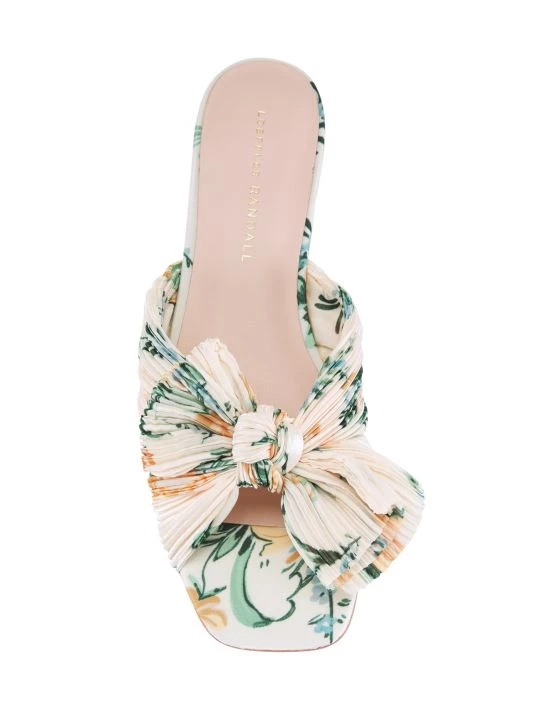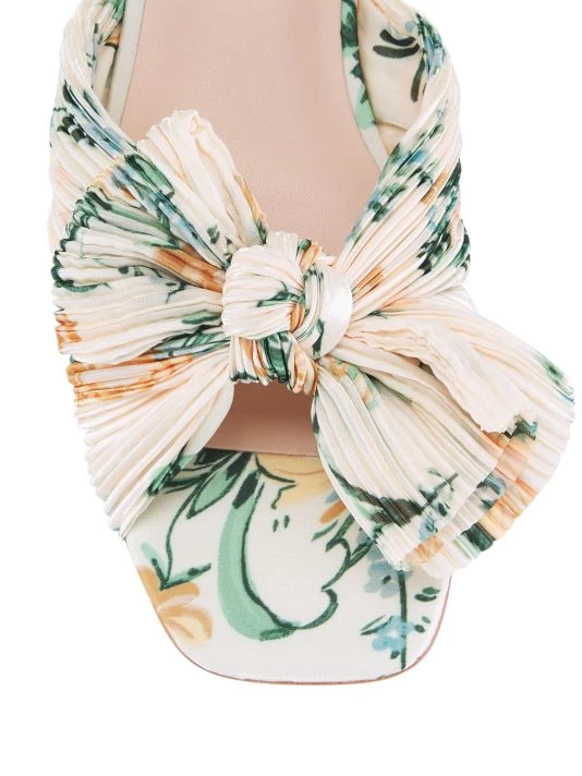 Loeffler Randall’s Daphne sandals are crafted of floral pleated fabric topped with a signature knotted bow.