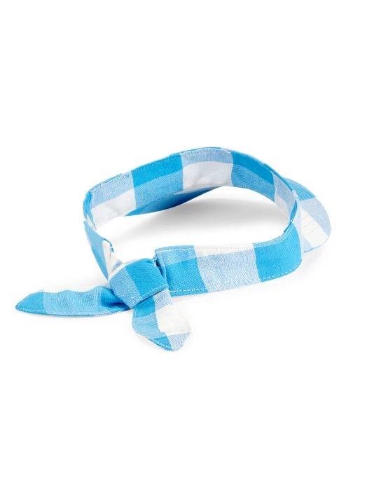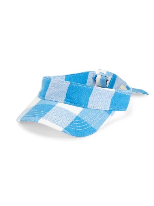 Loeffler Randall’s visor is crafted of gingham fabric with a tie closure.