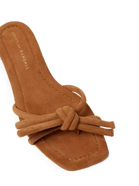 Crafted of rich suede, Loeffler Randall’s flat sandals are decorated with a luscious knotted bow. This slip-on pair is framed with a modern square toe.