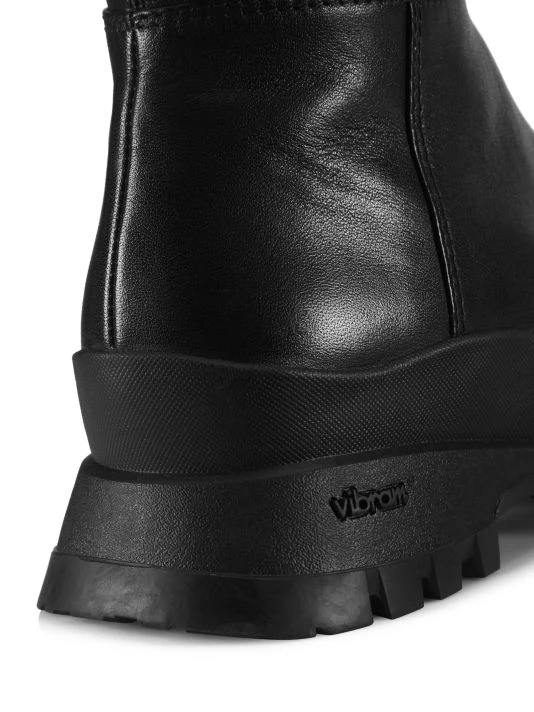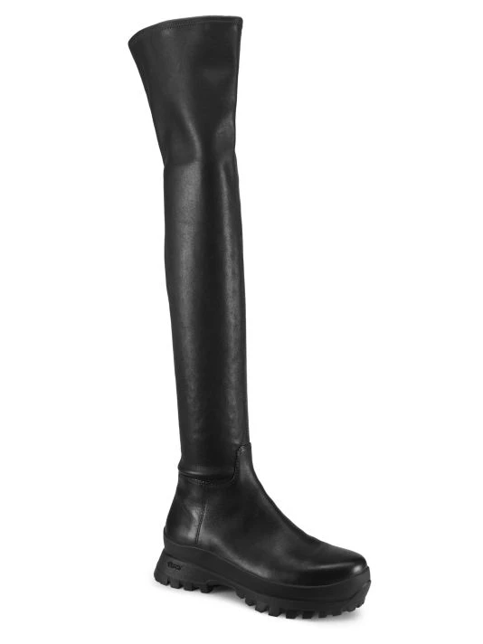 Crafted of smooth leather with stretch, Loeffler Randall’s Irma over-the-knee boots are enhanced with a perfectly rounded toe. This pair is mounted on a lugged rubber sole for a rugged look.