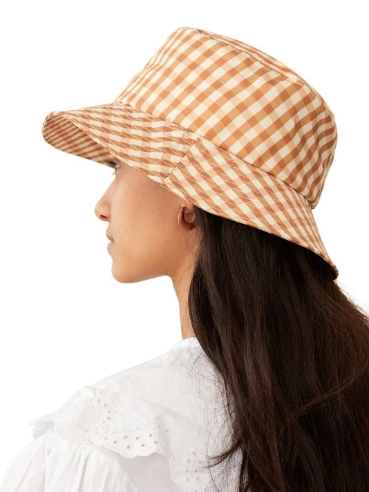 Designed with a dainty gingham pattern, this bucket hat lends rustic flair.