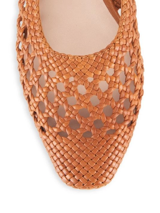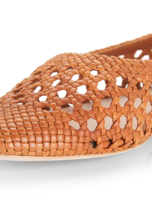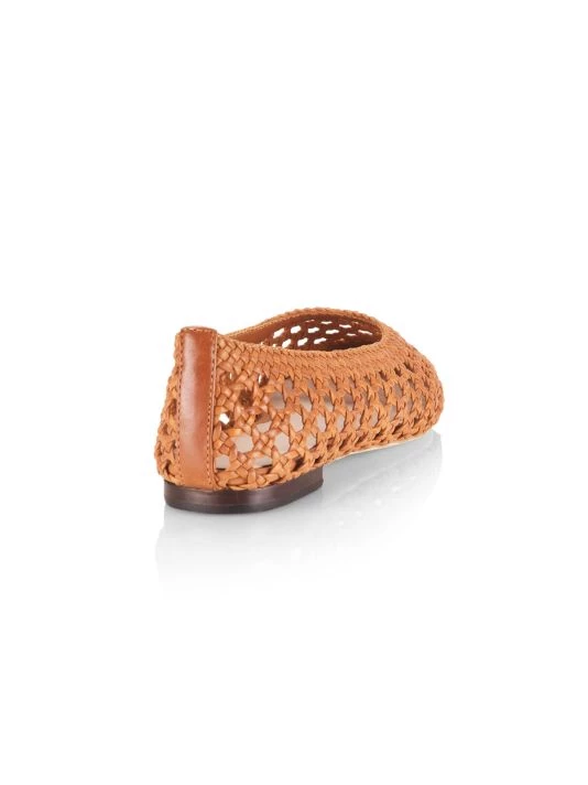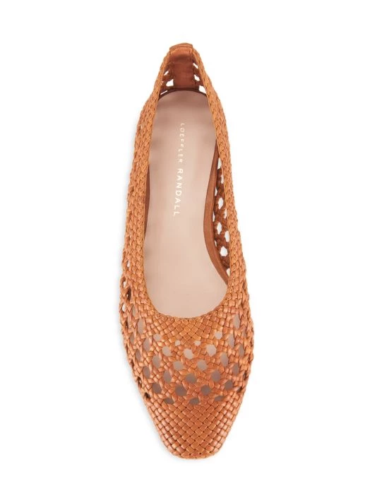 The Landry flats from Loeffler Randall are crafted of woven leather. This pointed-toe style features a padded footbed with a stamped logo.