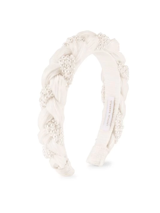 The Leon headband from Loeffler Randall is crafted of faux pearl-embellished braided organza.