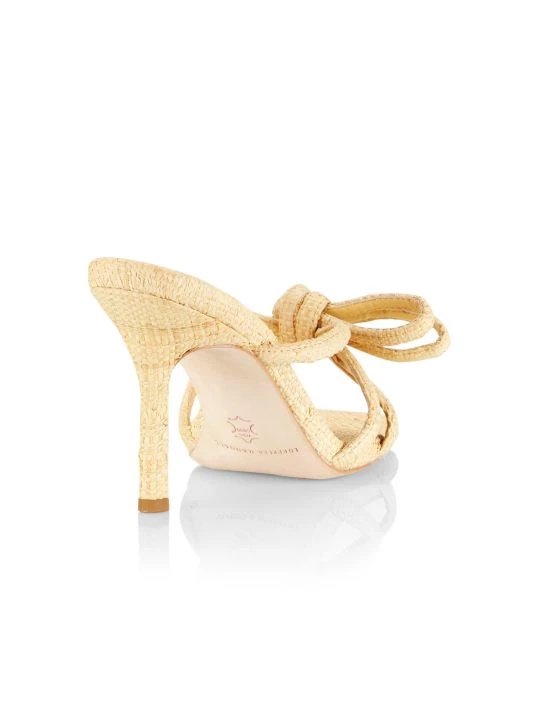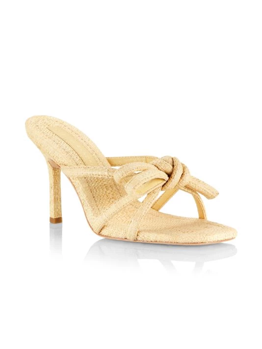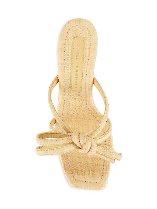Crafted of woven raffia, Loeffler Randall’s Margi sandals are designed with knotted bow vamp straps. This pair is enhanced with a modern square toe.