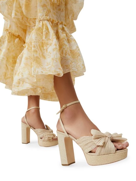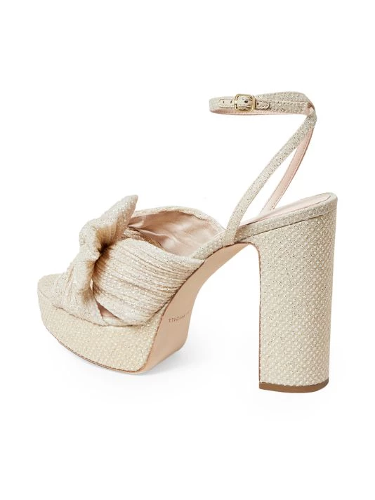 Loeffler Randall’s Natalia sandals are crafted of pleated sparkle mesh fabric, topped with a signature knotted bow.