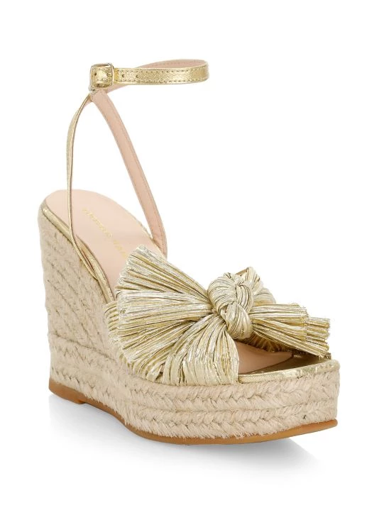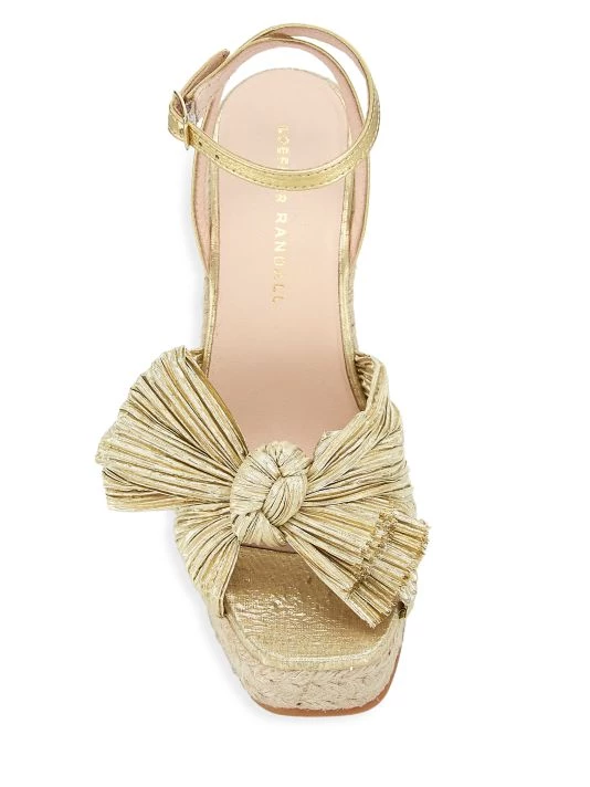 The Peri sandals from Loeffler Randall are crafted of metallic lamé topped with a signature knotted bow.