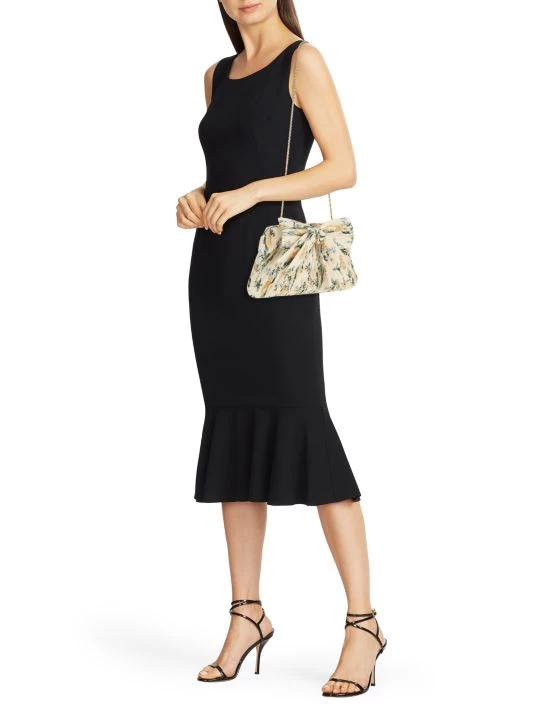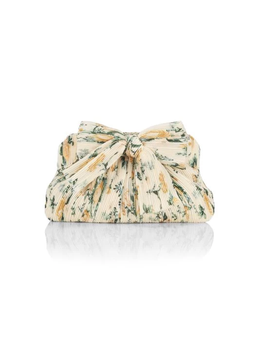 On a delicate chain, the Rayne satin clutch features an intricately pleated finish and Loeffler Randall’s signature knotted bow accent.