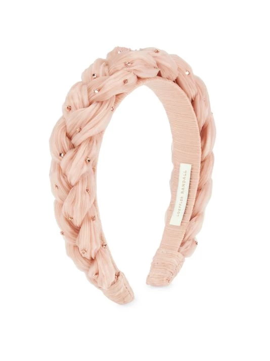 Loeffler Randall’s headband is crafted of braided organza fabric adorned with lustrous rhinestones.