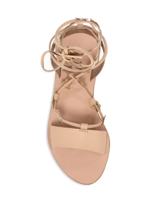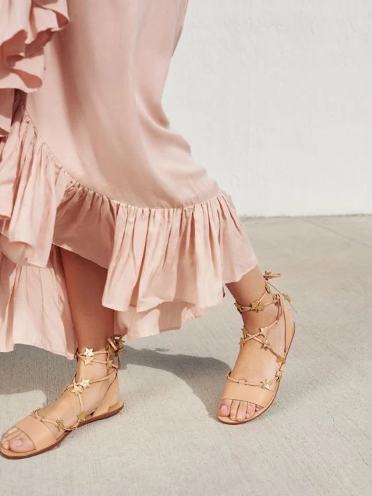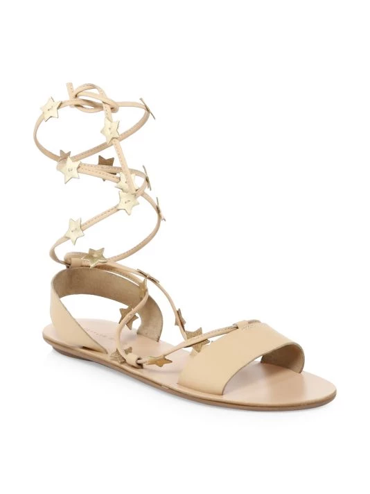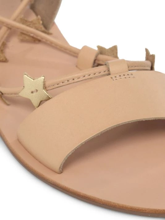 Trendsetting leather ankle-strap sandals with metallic star appliqué