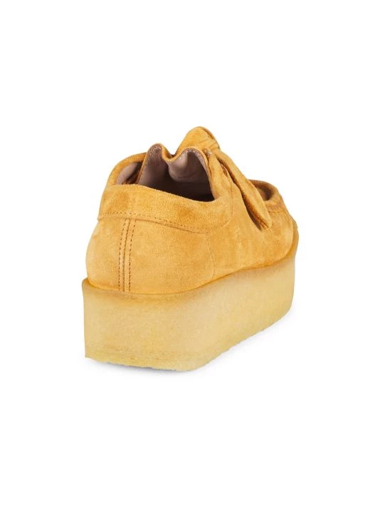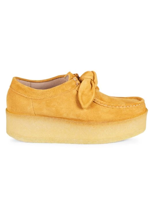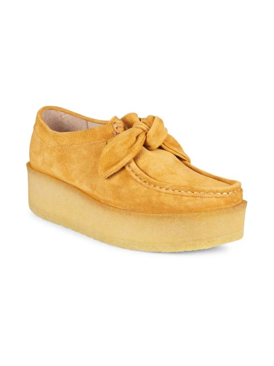 Elevated on a platform creeper sole, these soft suede loafers are finished with a knotted strap.