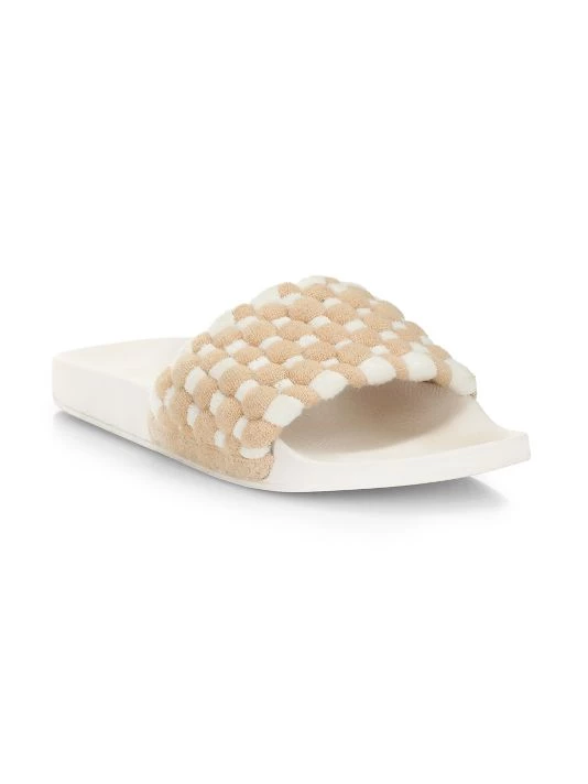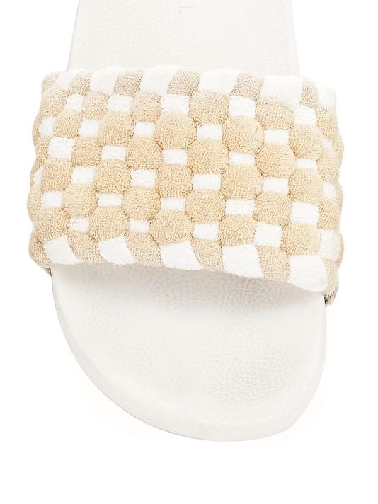 Set on a contoured footbed, Loeffler Randall’s pool slides are detailed with a woven terry vamp.